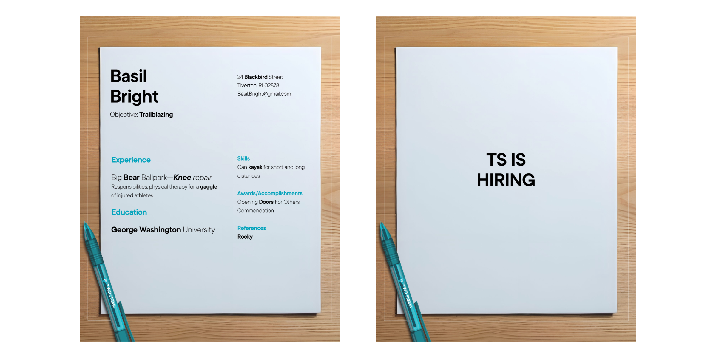 We’re looking for talent to join us at Two Sigma! Are you an outlier in a field? Perhaps at TS you can find a team where you’d fit right in. Take a look at these resumés and see if you can single out a message from our recruiting team.